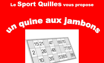 Samedi 03 janvier venez nombreux participer au quine de l’association Sport Quilles Olemps. Quine aux jambons et nombreux lots à gagner. Rendez-vous à la salle G.BRU à 20h30.