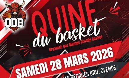 De nombreux lots vous attendent au quine de Olemps Druelle Basket, samedi 28 mars 20h30 à l’espace sportif Georges Bru Nombreux lots Gâteaux à la broche Roqueforts Paniers garnis Repas et bien d’autres lots surprises 5 € le carton 20 € les six cartons 30 € les dix cartons https://olempsdruellebasket.fr/articles/article/43/quine-odb