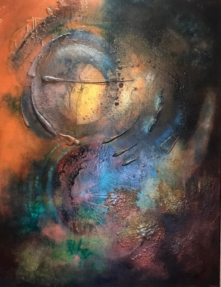 Autodidacte, Ludovic ECHE travaille l’acrylique et les matières naturelles en essayant de créer une harmonie en jouant sur les contrastes, afin d’amener au voyage.