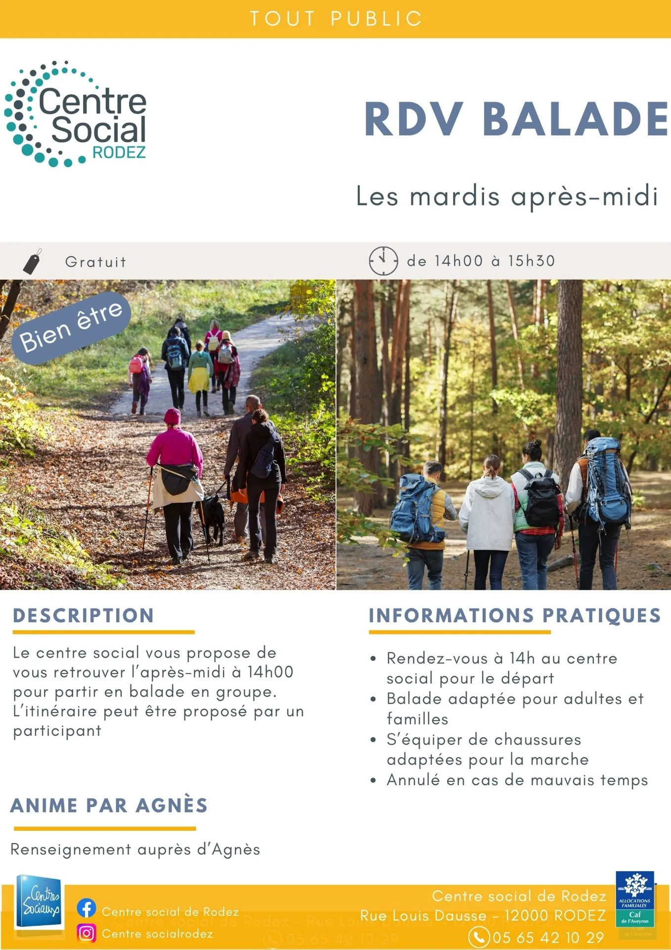 Nous vous proposons de nous retrouver l’après midi à 14h devant le centre social de Rodez pour une balade en groupe.