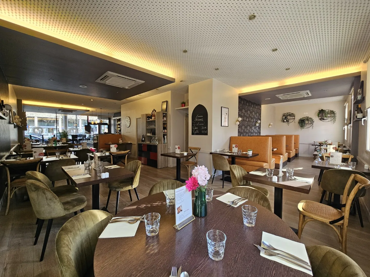 Cuisine élaborée avec des produits frais de saison. Concept original séparant un côté restaurant avec sa carte d’un côté comptoir où vous pourrez manger sur le pouce ou à emporter.