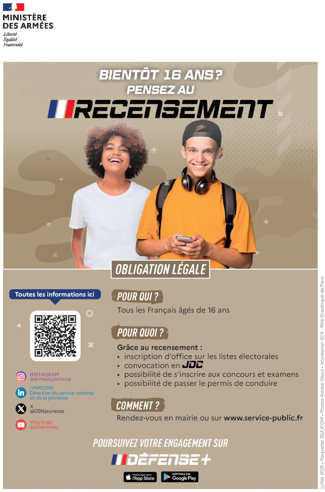 Toutes les informations sur le recensement citoyen : https://www.service-public.gouv.fr/particuliers/vosdroits/F870